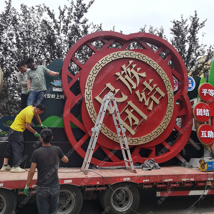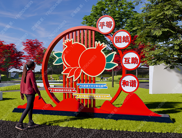 內(nèi)蒙古民族團結(jié)廣告牌石榴雕塑創(chuàng)文景觀小品