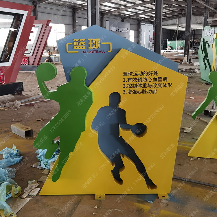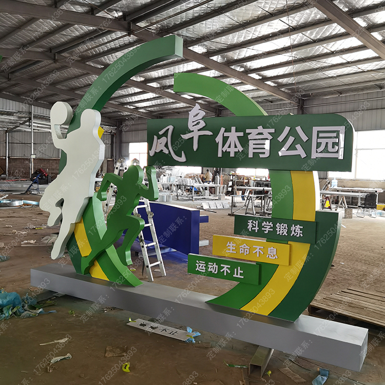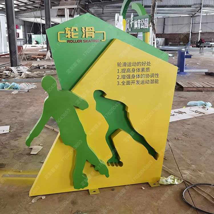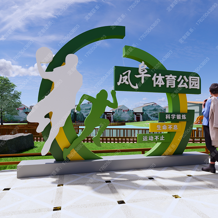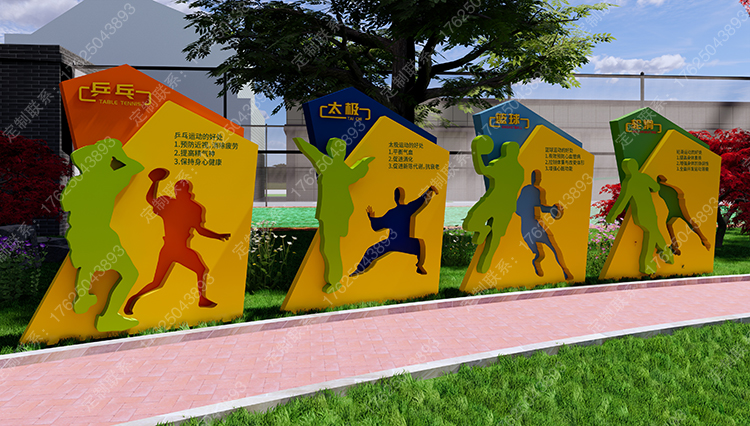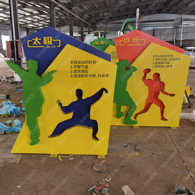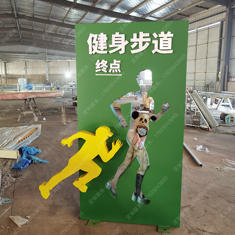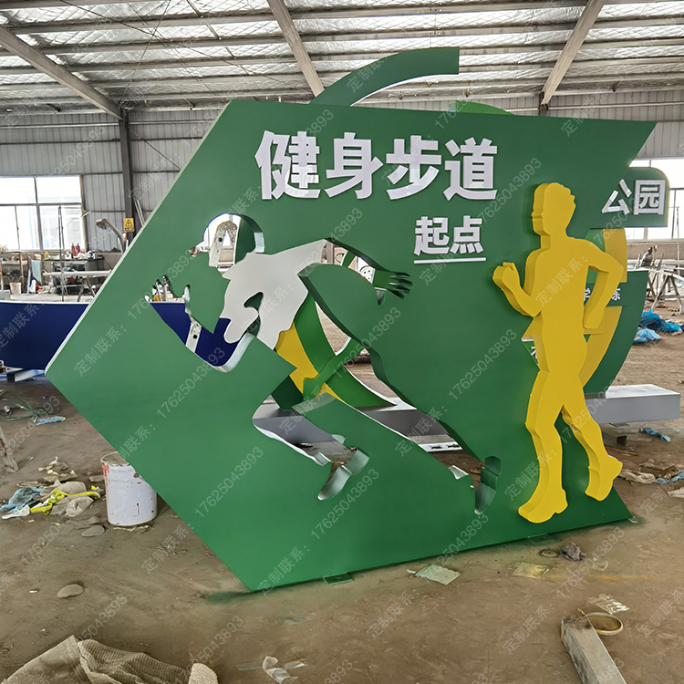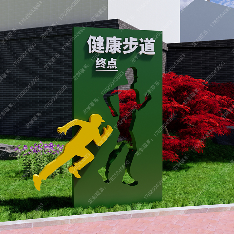 健身步道體育運動主題公園廣告牌健康宣傳欄騎行人物標識標牌