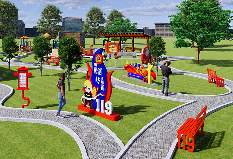 遼寧省本溪市消防主題公園,消防雕塑,消防標(biāo)示翻版游戲,消防小品,119標(biāo)識(shí)標(biāo)牌,消防標(biāo)識(shí)標(biāo)牌,119座椅,消防座椅