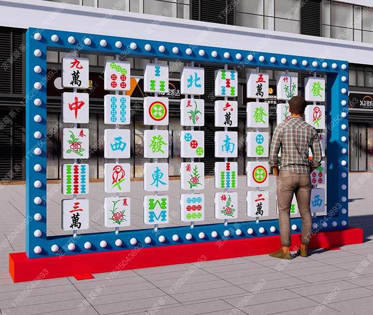 吾悅廣場麻將翻轉(zhuǎn)牌互動娛樂步行街翻翻樂網(wǎng)紅裝置商場美陳擺件
